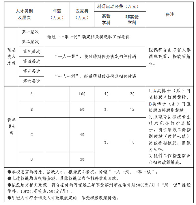 (四)引进人才可根据滨州市政策拎包免费租住人才公寓,也可入住学校周转房。