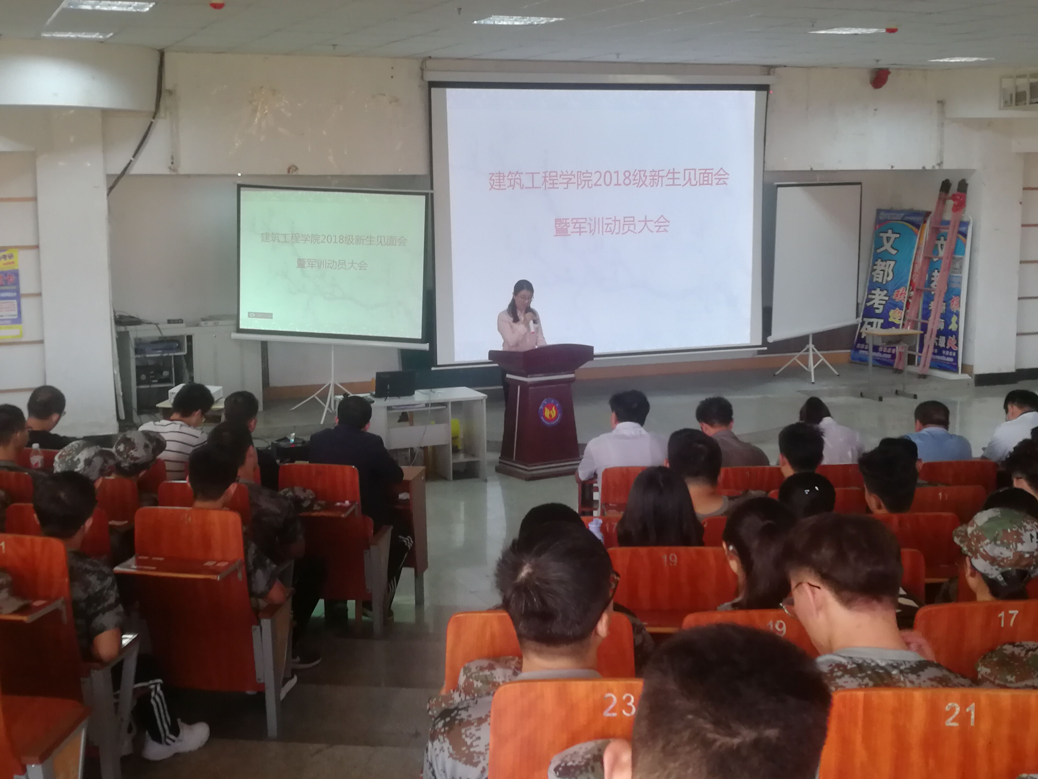 9月9日上午,公司在图书馆三楼报告厅举行了2018级师生见面会暨军训动员大会。学院经理左登华、党总支书记许广生、副经理李新、全体教职工及全体2018级新生参加大会,许广生书记主持会议。