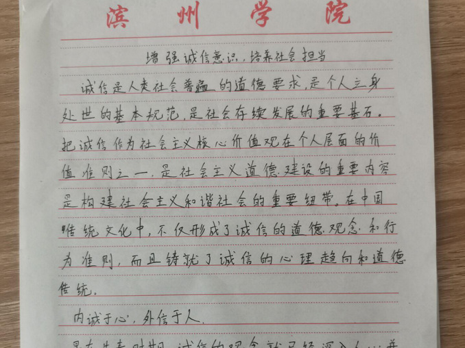比赛过程井然有序,同学们文思泉涌、奋笔疾书,认真书写着诚实守信、理性消费的必要性和重要性,他们从不同角度、不同层面诠释了各自对“诚信”的理解,用富有激情和真挚的话语解读了“诚信”的重要性。选手们的文章字里行间都督促同学们从自我做起,从小事做起,用自身的实际行动来践行“诚信”理念。他们通过提笔书写的方式,吐露出内心的情感欲望,展现了新时代老员工意志如铁、攻坚克难、勇担使命的精神风貌。