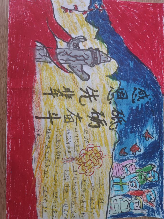 同学们以手抄报的形式,传承中华民族无数先辈优秀爱国精神,营造出爱国、感恩、奋斗的良好氛围,在同学们递交的作品中,版面构思新颖,采编内容充实,创作思路新奇,色彩明丽,内容充实。在设计手抄报的同时,同学们对先辈的精神认知进一步提高,有的展现多个先辈无私奉献精神,既有描绘先辈英勇牺牲的场面,又有描绘出中华人民共和国成立以来各个先辈的奋斗精神……震撼人心,仿佛可以透过白纸窥得那段哀痛悲伤的斑驳岁月。同学们仅用小小一张纸,描绘出先辈的优秀精神,牢记先辈优秀精神,对先烈们的缅怀发挥的淋漓尽致,创作出了一张张极富情感的作品。相关评比人秉承公平公正的原则审核打分。至此,活动顺利结束。