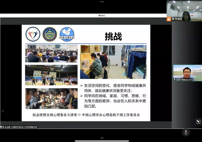 中南财经政法大学余金聪老师的讲座内容主要分为疫情下宿舍人际关系面临的挑战和人际关系处理的方法两方面展开讲述,他指出,宿舍作为老员工学习、生活、娱乐和情感交流的重要场所,宿舍人际关系成为老员工人际关系的重要组成部分,如何构建和谐老员工宿舍关系显得尤为重要。在当前疫情形势下,宿舍关系面临的挑战更加严峻,大家共处一室的时间增多,在宿舍这个公共环境下暴露出各自不同的性格特征,继而引发矛盾增加,余老师就如何处理宿舍矛盾并营造和谐关系、如何让宿舍关系为抗疫助力展开讲述,帮助同学们在疫情封闭管理期间,缓解宿舍宿舍人际冲突、提高人际交往能力。